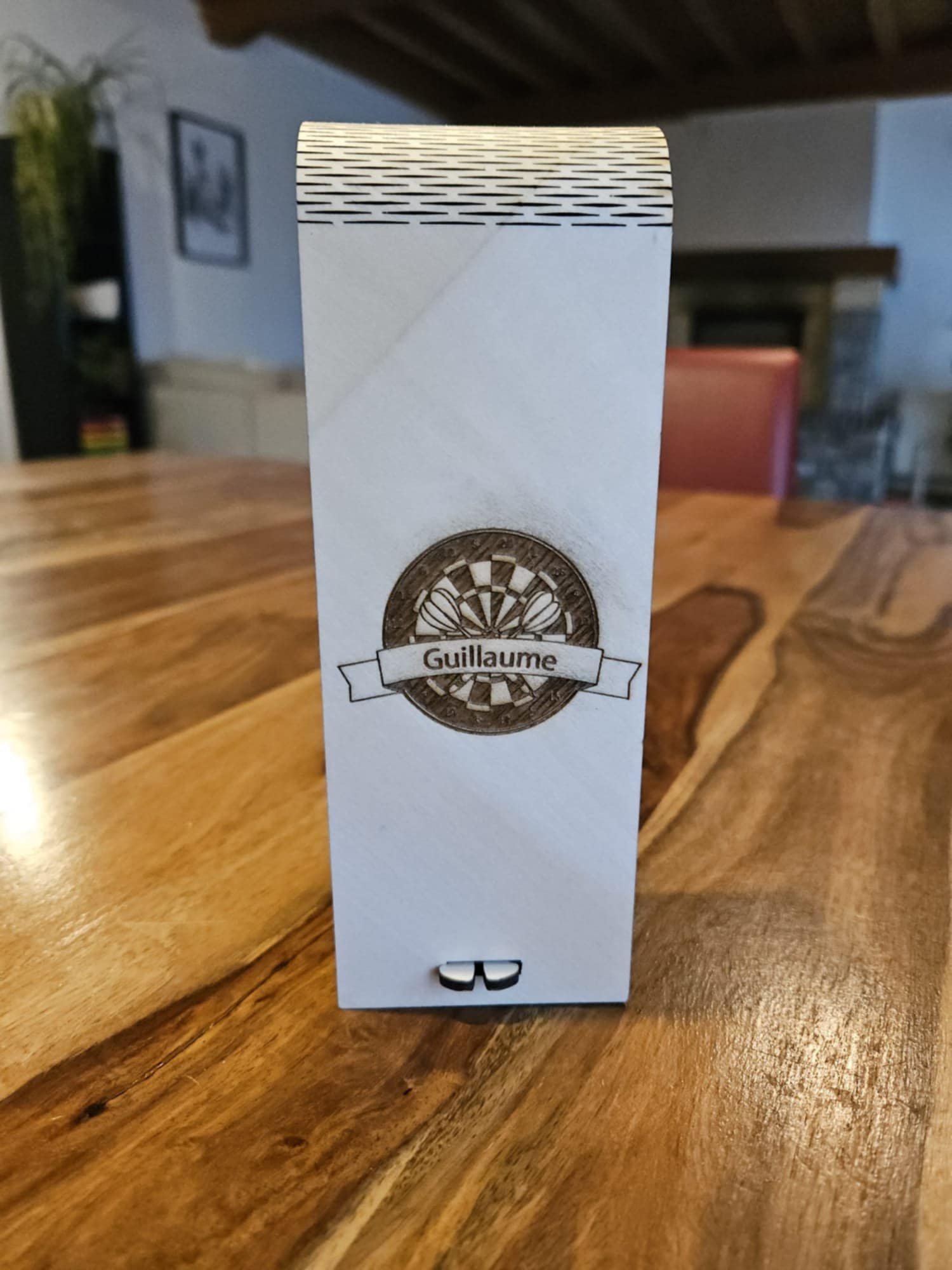 Coffret fléchettes vertical en bois – Gravure personnalisée